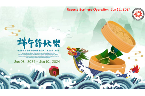 Greetings, Good Day! We will take a long weekend from Jun. 8 (Sat.) to Jun. 10 (Mon.), 202...